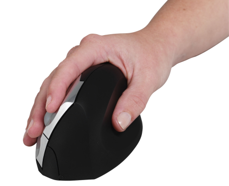Die Minicute SRM Vertical Mouse ist eine vertikale PC Maus. Diese vertikale Stellung fördert einen neutralen Stand des Handgelenks, der Finger und des Unterarms. Dieses vermindert die Muskelspannung, wodurch Überbelastungsbeschwerden vorgebeugt oder gelindert werden. Der Daumen und die Zeigefinger begleiten die PC Maus während der Bewegung. Die restlichen Finger bedienen die Tasten und das Scrollrad. Diese PC Maus ist gut als Präventionsmaßnahme einzusetzen, ist aber auch geeignet bei leichten Überbelastungsbeschwerden. Die SRM PC Maus soll mit Bewegungen aus dem ganzen Arm bedient werden und nicht mit Bewegungen des Handgelenks. Sie ist geeignet für PC und Macintosh, hat einen USB Anschluss und 3 Tasten sowie ein Scrollrad.Connection: wirelessHandnutzung: für die rechte HandFarbe schwarzBetriebssystem: Windows 7/8/10, Mac, Linux / Unix (2 Tasten)Kabellänge in cm: 150DPI: 400, 800, 1600Tastenzahl: 4 einschl. ScrollradProgrammierbar j/n: neinScrollrad j/n: jaDaumentaste RückwärtsfunktionNeigungswinkel 80 GradUSB Empfänger2 Stk AAA-Batterien notwendig, nicht im LieferumfangGewicht: 0,135 KGProduktmaße: 11 x 7 x 7 cmMinicute GmbHKrongasse 15D-98593 Floh-Seligenthalservice@minicute.euminicute.eu