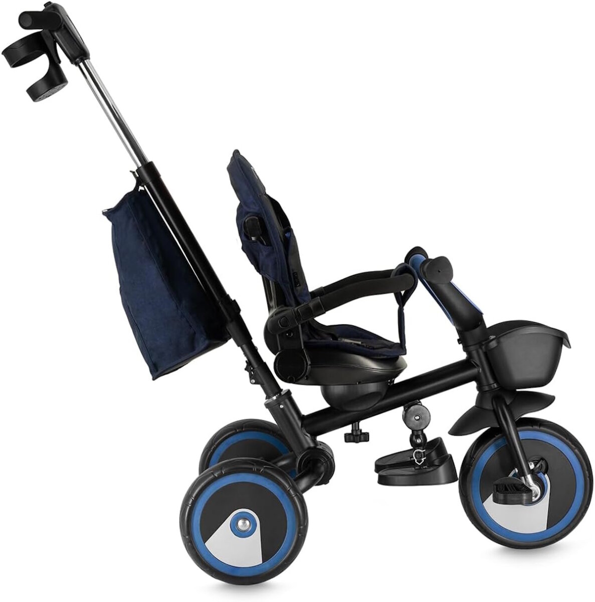 MoMi IVI Kinderdreirad Blau – 3-in-1 Tricycle mit 360° Sitz & Schiebestange