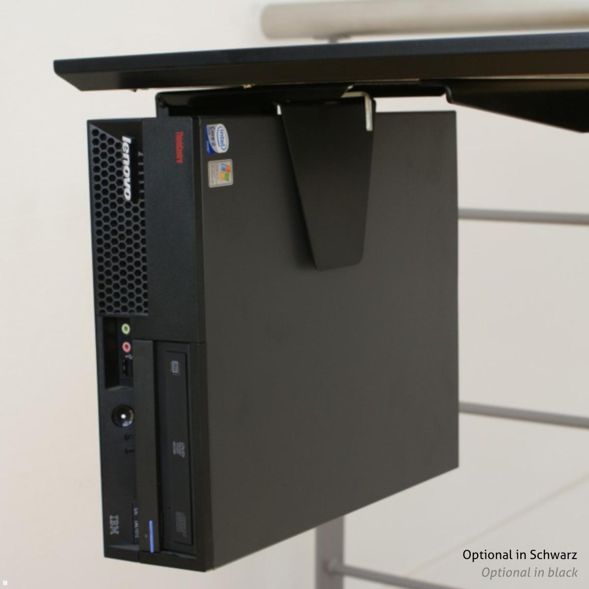 Die stabile MonLines PCH003W PC Halterung kann universell für schmale PCs eingesetzt werden. Die Montage erfolgt einfach und mühelos unter der Schreibtischplatte / Arbeitsplatte.