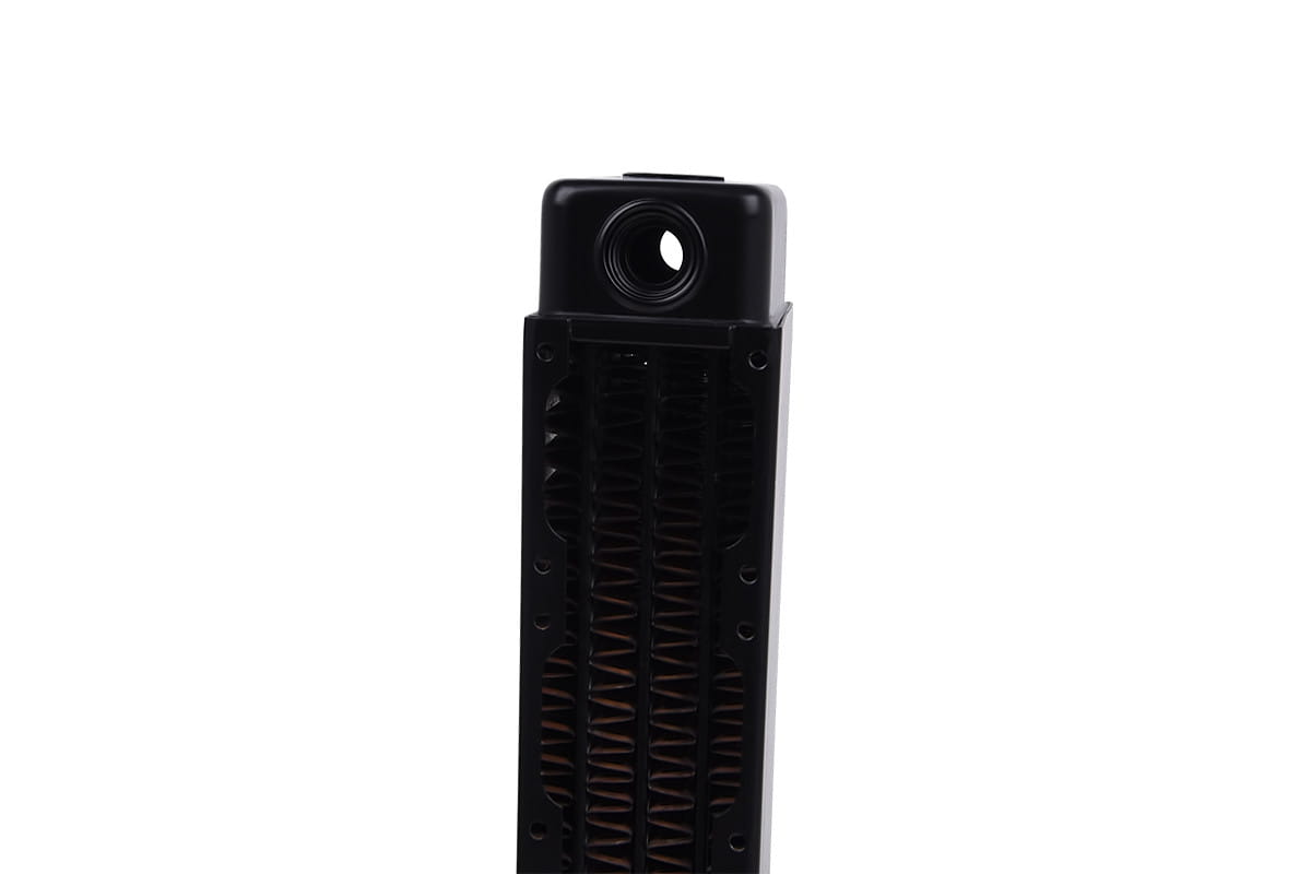 Es ist das beste System, denn es ist dein System! Gib dich nur mit der Perfektion zufrieden! Die neue NexXxoS UT60 X-Flow Server Radiatoren führen dich auf die nächste Stage! Steigere die Leistung deines Systems mit den neuen NexXxoS UT60 X-Flow Server Radiatoren. Dieser Radiator kann bei einer Umgebungstemperatur von 30°C und Lüfter mit 12.000 rpm bis zu 490 W abführen. X-Flow ? gib dich nur mit dem Besten zufrieden Für die bestmögliche Kühlung deines Systems setzt bei den neuen NexXxoS Server Radiatoren auf den X-Flow. Der Fluss läuft von der einen Seite des Radiators zur anderen Seite und bedient sich direkt allen Finnen. Dein NexXxoS UT60 X-Flow erreicht sofort die bestmögliche Kühlung mit optimiertem Wasserkreislauf. Versenkte Verschlussschrauben ? alles, nur nicht gewöhnlich Erstmals hat die Verschlussschrauben versenkt. Dieses einzigartige Design ermöglicht es dir, mit deinem NexXxoS UT60 X-Flow Radiator flexibel zu bleiben. Montiere deinen Radiator so wie du es brauchst. Dank der verschieden positionierten Ein- und Auslässe bleibst du individuell und einzigartig. Vollkupfer ? die beste Performance auf höchstem Niveau Auch bei der neuen NexXxoS Reihe ist der Radiator aus Vollkupfer hergestellt. Dadurch bieten dir die Radiatoren die höchste Wärmeleitfähigkeit für die beste Performance. Setze auf die Nr. 1 bei den Materialien. Unterschiedliche Größen ? gleiche Qualität Den neuen NexXxoS UT60 X-Flow gibt es in unterschiedlichen Größen und Dicken. Alle Radiatoren dieser Reihe sind kompatibel zu den 2HE Server-Racks. Dank der besonderen Form ist der Einbau auch bei den größeren Radiatoren ein Kinderspiel. Entscheide selbst, welche Größe für dein System perfekt ist und wähle immer die beste Qualität. Technische Daten BxTxH 326,5 x 60 x 40,5 mm Anzahl Kühlkanäle 9 Nettogewicht 657 g Maximale Arbeitstemperatur 60 °C Material Kühlfinnen Kupfer Material Kühlkanäle Kupfer Material Vorkammern Kupfer Material Außengehäuse Stahl Fins per Inch 12 Anschlüsse 6x G1/4? Montagemöglichkeit Radiator 12 x M3 Gewinde Lüftergröße 40 mm Lüfterplätze 7 einseitig / 14 beidseitig Lüftergewinde M3 Druckgetestet 0,8 Bar