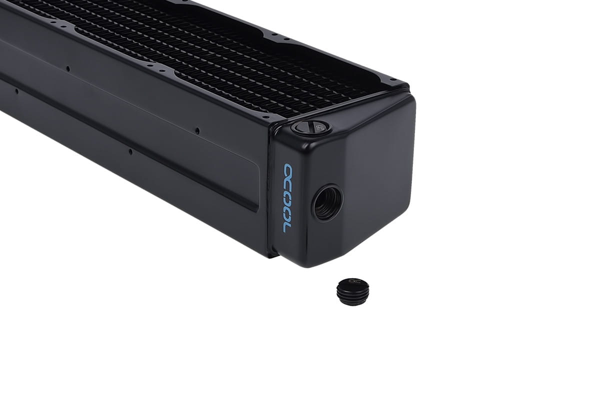 ist ein international renommiertes Unternehmen im Bereich Wasserkühlungslösungen für Industrie- und Endkunden, das laufend Neuheiten und Verbesserungen entwickelt, die zur optimalen Kühlleistung und optischen Aufwertung der Heim- wie auch Firmenrechner und Server dienen. Perfekt für Workstations und Server Die 80 mm NexXxoS Radiatoren sind speziell für Server Racks und Workstations entwickelt worden. Durch ihre geringe Höhe von lediglich 80 mm und den speziellen M3 Montagebohrungen auf Ober- und Unterseite, passen sie perfekt in 2HE Server Racks. Alternativ lassen sich die Radiatoren auch ganz klassisch über die Montageplätze der Lüfter montieren. Auch hier werden M3 Schrauben benötigt. Kein Kompromiss bei den Materialien Grundsätzlich setzt bei den Materialien der NexXxoS Radiatoren auf Kupfer. Dabei ist der einzige Hersteller weltweit bei dem alle Wasserführenden Komponenten aus reinem Kupfer bestehen. Angefangen bei den Vorkammern über die Wasserkanäle und die Kühlfinnen ist alles aus reinem Kupfer. Lediglich die Anschlussgewinde bestehen aus reinem Messing, da reines Kupfer für die Gewinde zu weich wäre und mit der Zeit nachgeben würde. Überragende Kühlleistung Es gibt gleich mehrere Ansätze die zur Steigerung der Kühlleistung verwendet. Natürlich bietet Kupfer als Materialgrundlage die besten Eigenschaften zum Abführen der Wärme. Das bei günstigen Produkten gerne verwendete Aluminium, kann in Sachen Wärmekapazität und Wärmeleitfähigkeit Kupfer natürlich in keinster Weise das Wasser reichen. Die Kupferkühlfinnen sind gegenüber den meisten anderen Herstellern nur extrem dünn lackiert. Dadurch wird die Kühlleistung nicht vermindert. Denn eine dicke Lackierung wirkt wie eine Dämmung. Der Finnenabstand ist zudem mit 10 FPI optimal gewählt. Dadurch stehen die Finnen nah genug zusammen um genügend Kühlfläche zu erzeugen, aber auch weit genug auseinander, um den Luftstrom nicht zu behindern. Zusätzlich sind sämtliche Kühlfinnen mit Flaps überzogen um für eine kontrollierte Luft Verwirbelung zu sorgen. Dadurch kann die hindurchströmende Luft die Wärme viel besser von den Kühlfinnen aufnehmen und weg transportieren. X-Flow statt U-Flow Der Wasserverlauf erfolgt bei klassischen PC-Radiatoren U-Förmig. Das bedeutet, der Wasser Ein- und Ausgang befinden sich auf einer Seite des Radiators. Das hat im normalen PC-Bereich gewisse Vorteile. Allerdings ist es schwierig auf diese Weise einen vernünftigen Wasserkreislauf in einem extrem flachen Serveraufzubauen. Durch die X-Flow Technik befindet sich der Ein- und Ausgang auf den jeweils gegenüberliegenden Seiten. Dadurch lässt sich sehr einfach ein Kreisförmiger Wasserverlauf im Server Rack verwirklichen. Man geht zur einen Seite raus, direkt in eine CPU, eventuell danach in eine oder mehrere Grafikkarten und dann wieder auf der anderen Seite zurück in den Radiator. Vielseitige Anschlussmöglichkeiten Jeder NexXxuS 80 mm X-Flow Radiator ist großzügig mit jeweils drei Anschlussmöglichkeiten auf beiden Seiten bestückt. Dadurch kann nahezu jede erdenkliche Montageposition verwirklicht werden. Die Anschlüsse befinden sich pro Seite jeweils auf der gegenüberliegenden Position und einmal an den Kopfenden der Radiatoren. Damit es zu keinen bösen Überraschungen bei der Bemaßung kommt, hat spezielle patentierte Verschlussschrauben entwickelt die bündig mit dem Radiator abschließen. Bisherige Lösungen standen immer über die Länge oder Breite des Radiators über, denn sie waren nicht versenkt. Wenn Sie an einer professionellen Umsetzung einer Wasserkühlung für Ihre Server oder Workstations in Ihrem Rechenzentrum interessiert sind, bietet auch komplette Lösungen mit speziellen Ausgleichsbehältern, Pumpen und Kühlern an. Dazu gehören unter anderem hoch optimierte Wasserkühler für Workstation-Grafikkarten und -CPUs. Schreiben Sie uns Ihre Anfrage an: info@com Technische Daten L x B x H 284 x 60 x 80 mm (+/- 3% Toleranz im Bereich der Vorkammern) Anzahl Kühlkanäle 21 Material Kühlfinnen, Vorkammern & Kühlkanäle Kupfer Material Gewinde Messing Material Außengehäuse rostfreier Stahl Anschlüsse 6x G1/4" IN/OUT (max. 5mm Gewindelänge) Mögliche Lüftergröße 80mm Mögliche Lüfterbelegung 3x einseitig / 6x beidseitig Gewindegröße Lüftermontage M3 Druck getestet 0,8 Bar Maximale Arbeitstemperatur 60°C Finnenabstand 10 FPI Gewicht 900g Farbe schwarz