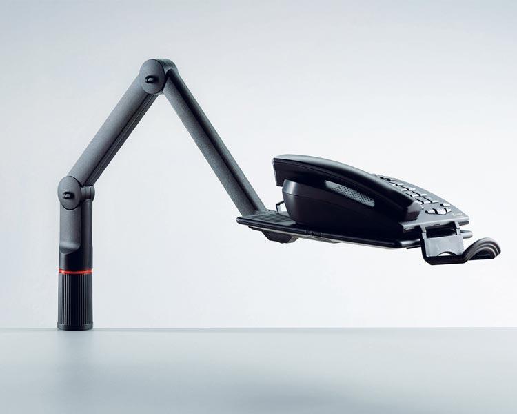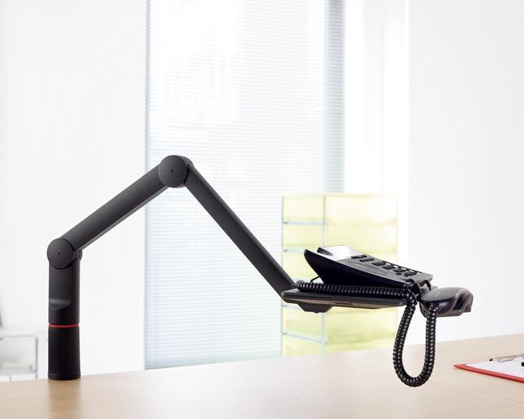 Der Novus TalkMaster Telefonhalterung anthrazit (710+0005+000) mit 2-teiligem Gelenkarm für die Positionierung in 3 festen Stufen.
