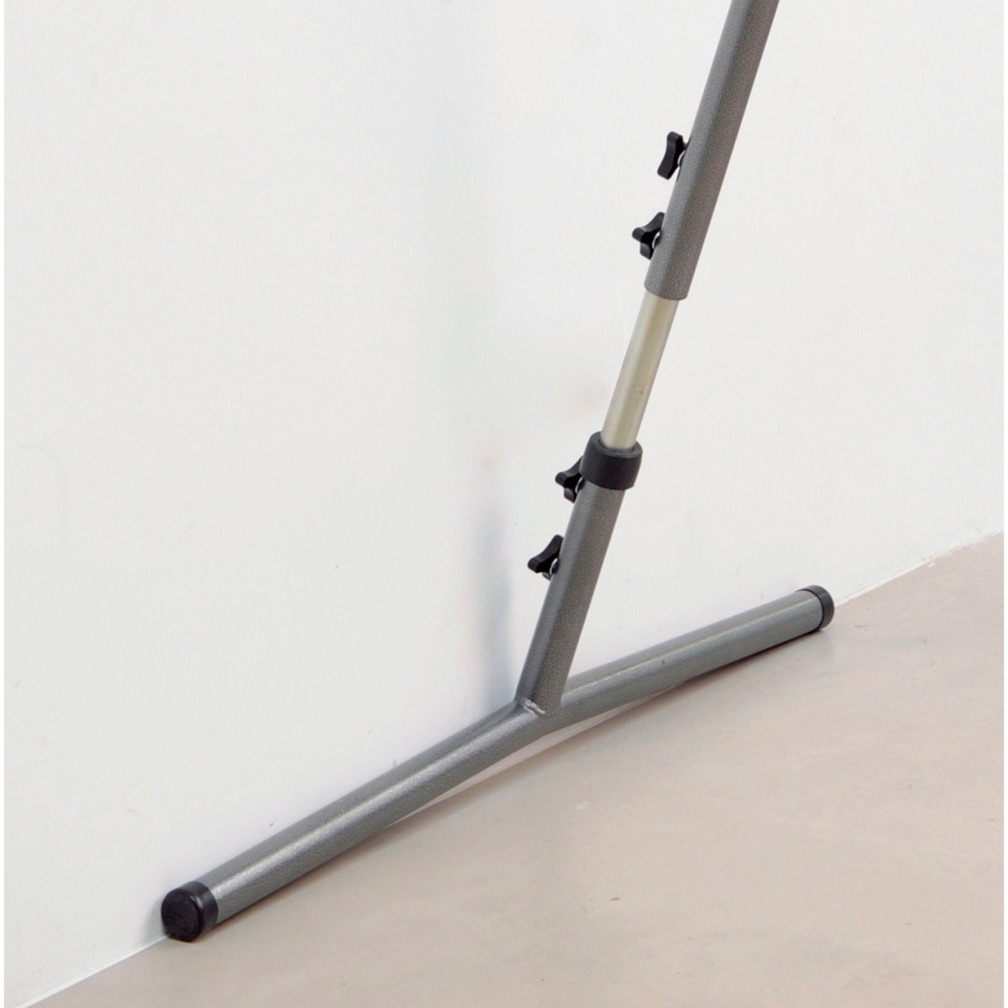 ProduktbeschreibungMit der Palmera Hängesessel-Halterung braucht man nicht viel Platz um sich zu entspannen. Das Gestell kann bei Nichtnutzung einfach flach an die Wand gestellt werden und eignet sich damit auch für kleinere Räume. Über die Teleskop-Röhre kann das Gestell auf bis zu 2,5 Meter ausgefahren werden