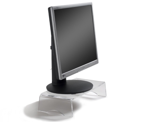 Der Q-riser 90 ist ein Monitorständer, der sich bestens für Flachbildschirme eignet. Sie können damit den Monitor schnell und ohne Aufwand in eine bessere Position heben. Eine gute Haltung kann damit befördert werden. Wenn der Monitor zu niedrig eingestellt ist, muss der Kopf bei der Arbeit über einen längeren Zeitraum geneigt werden. Die Nackenmuskuatur ist dabei einer dauerhaften Belastung ausgesetzt und auch die Augen müssen Schwerstarbeit verrichten. Ein entspanntes und ergonomisches Arbeiten wird möglich, wenn die Oberkante des Monitors nur ein wenig tiefer ist als die Augen bei einer aufrechten Haltung. So kann man am Rechner mit nur ganz leicht gesenktem Blick arbeiten – und eine optimale Körperhaltung ermöglichen. Ist der Monitor nicht verstellbar, kann man mit dem Q-riser zu einer schnellen Lösung gelangen. Der Monitor wird durch das kleine Podest um 9cm angehoben und befindet sich nun in Ihrem Gesichtsfeld. Zusätzlich bietet der Monitorständer jetzt einen neuen Ablagebereich unterhalb des Monitors. Der Q-riser – aufgeräumt und gesund am Schreibtisch! Bitte achten Sie darauf, den Monitor nicht zu hoch einzustellen, um den Nacken nicht zu belasten.Farbe: klarTragkraft: 15 kgMaterial: AcrylVerstellbar j/n: neinintegrierte Kabelführung auf der RückseiteGewicht: 0,91 KGProduktmaße: 38 x 20 x 9,5 cm