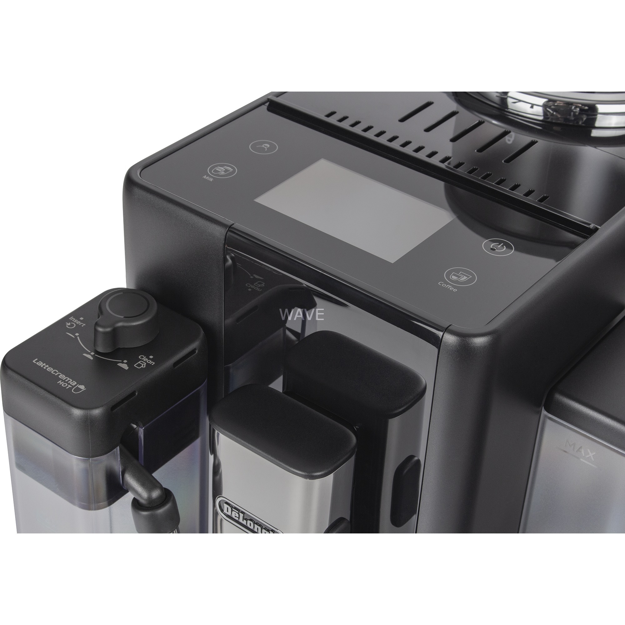 ProduktbeschreibungTauchen Sie mit Rivelia in die Welt des Kaffees ein. Entdecken Sie mit dem Bean Switch System unendliche Bohnensorten und genießen Sie ein immersives Erlebnis mit einem 3,5-Zoll-Farbdisplay mit reichhaltigen Animationen und Kaffeeroutinen, die speziell auf Sie zugeschnitten sind. Runden Sie Ihre Getränke auf Milchbasis mit feinem, reichhaltigem Schaum mit der LatteCrema Hot Milchsystem in einer kompakten Maschine ab, die zu Ihrem Stil passt. Die Rivelia wird mit zwei austauschbaren 250-g-Trichtern geliefert, damit Sie verschiedene Kaffeearomen genießen können. Um sich auf den Wechsel vorzubereiten, verwenden Sie zunächst den Switch-Modus, um die aktuellen Bohnen aus dem Mahlwerk zu entfernen. Sie haben die Wahl: Sie können einen Kaffee brühen oder die Bohnen mahlen. Genießen Sie die einfache Bedienung des intuitiven 3,5-Zoll-Full-Touch-Farbdisplays mit umfangreichen Animationen. Rivelia lernt Ihre Kaffeeroutine und passt Ihr Menü den ganzen Tag über an, für ein immersives Kaffeeerlebnis, das auf Sie zugeschnitten ist. Die Maschine ermöglicht bis zu vier Benutzerprofile.