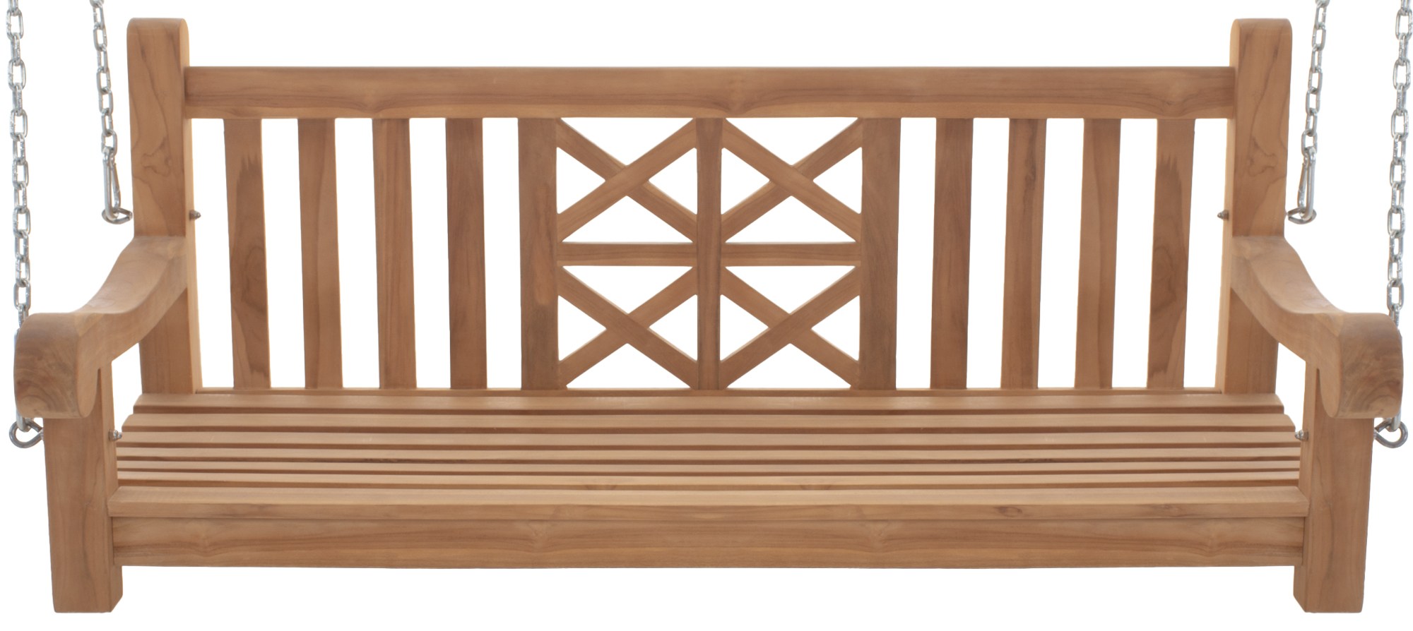Die Gartenschaukel sieht mit dem schlichten Äußeren und der goldbraunen Farbe des Teakholzes schick aus und kann mit einer Vielzahl unterschiedlicher Einrichtungsstile kombiniert werden. Die Bank eignet sich ideal zum Entspannen. Sitzbereich und Rückenlehne sind leicht gewölbt, sodass die Sitzbank auch ohne Polster bequem ist. An den Seiten ist die Teakbank außerdem mit Armlehnen ausgestattet.