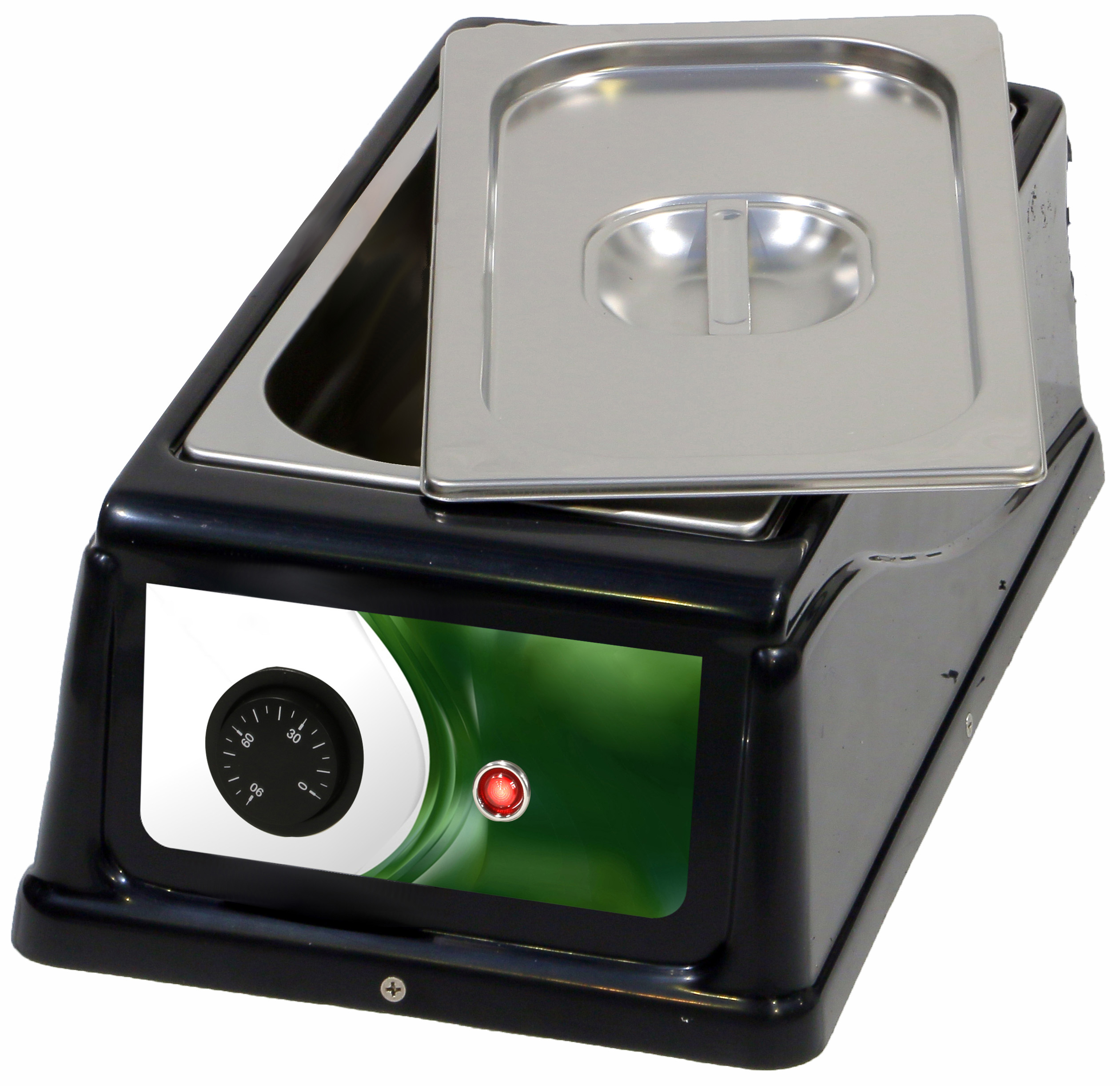 Edelstahlbehälter herausnehmbar n- mit Deckel n- der Boden und die Seiten werden beheizt n- Kunststoffgehäuse n- trockenbeheizt n- 0° bis 46°C regelbar n- 3,5 Liter n- inkl. 1/3 GN Schale