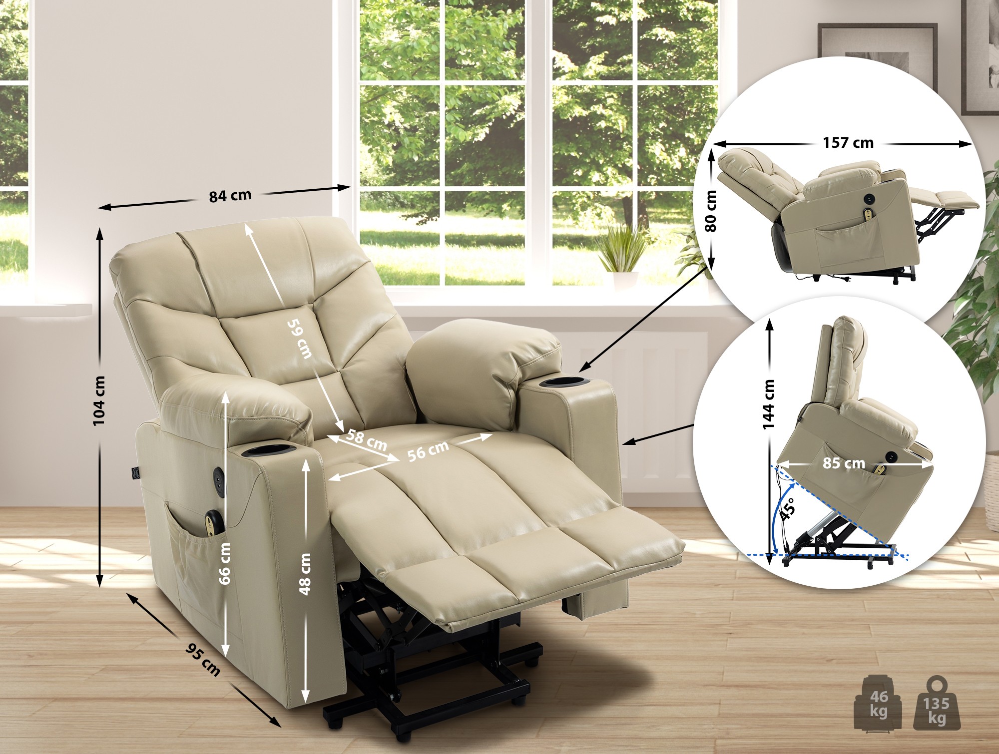 Erleben Sie Entspannung auf einem neuen Level mit dem Andover Relaxsessel. Dieser Sessel bietet nicht nur eine hilfreiche elektrische Aufstehhilfe, sondern auch eine bequeme Liegefunktion, die es Ihnen ermöglicht, sich zurückzulehnen und zu entspannen. Ausgestattet mit einer stabilen Rückenlehne und weicher Polsterung garantiert der Sessel Komfort und Unterstützung. Die zwei seitlich integrierten USB-Ports sind praktisch für das Laden Ihrer elektronischen Geräte, während die eingebauten Getränkehalter dafür sorgen, dass Ihr Lieblingsgetränk immer in Reichweite ist. Einfach zu bedienen dank der kabelgebundenen Fernbedienung, passt sich der Andover Sessel Ihren Bedürfnissen an und fügt sich nahtlos in jedes Wohnambiente ein.