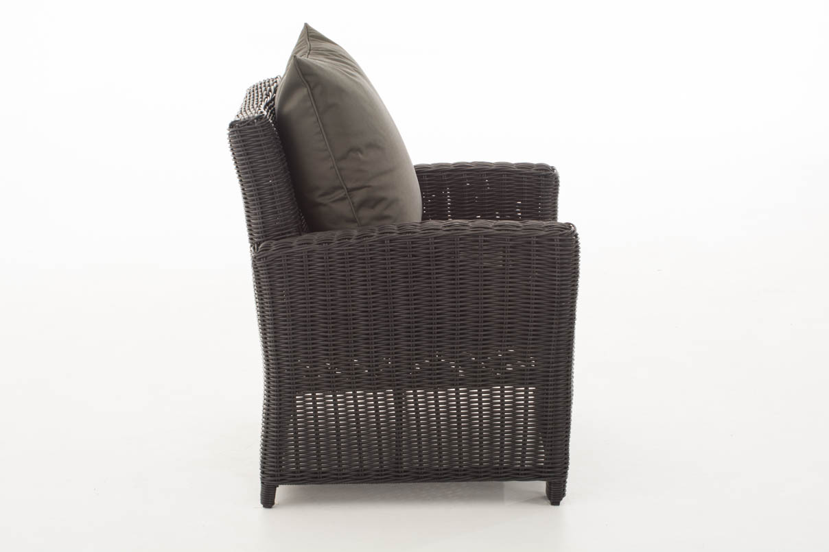 Flexibel und formschön – so präsentiert sich dieser Polyrattan Sessel. Der kompakte Sessel bietet mit seinem bequemen Sitzpolstern und Rückenkissen hohen Komfort – alle Polster und Kissen sind bereits im Lieferumfang enthalten! Hier sitzt es sich nicht nur schön gemütlich, sondern auch ergonomisch vorteilhaft: Die Rückenlehnen sind leicht nach hinten geneigt, die Armlehnen oben etwas abgerundet.