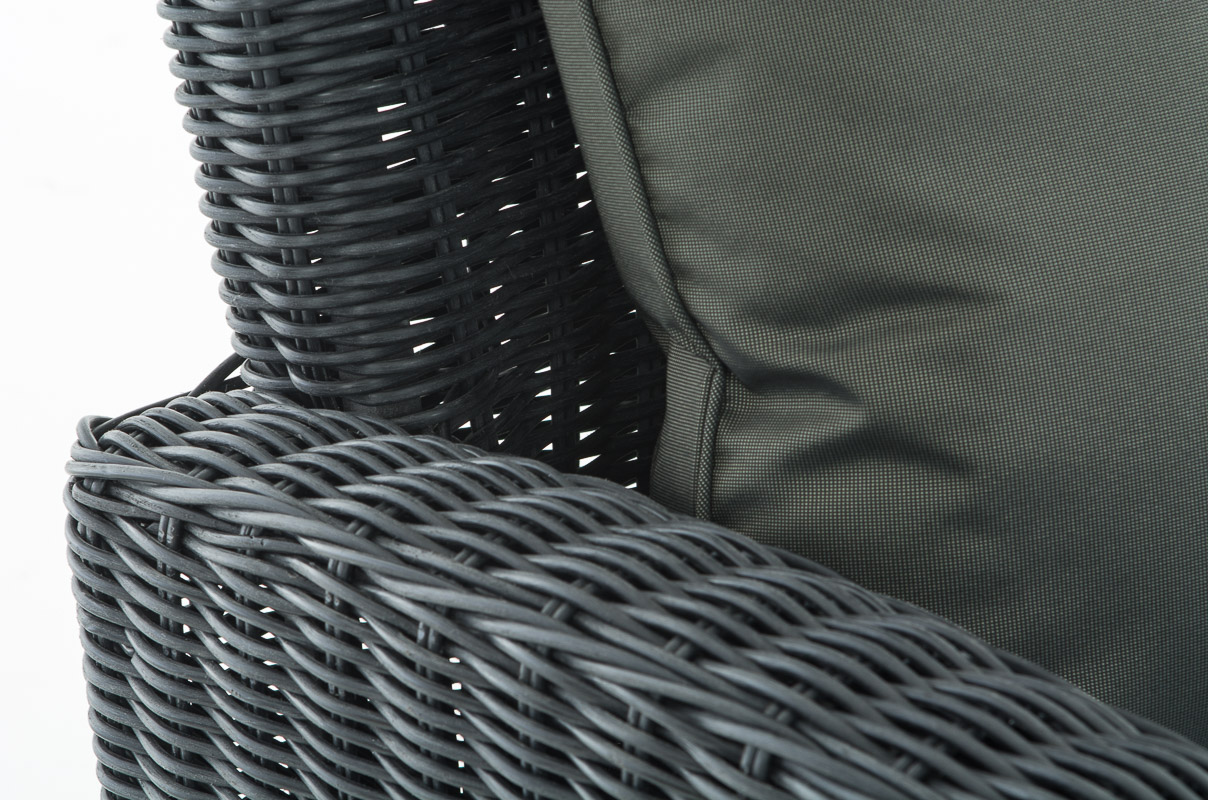 Die Polyrattanfasern sind wasserfest, angenehm pflegeleicht und UV-beständig