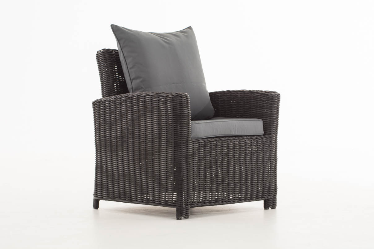 Flexibel und formschön – so präsentiert sich dieser Polyrattan Sessel. Der kompakte Sessel bietet mit seinem bequemen Sitzpolstern und Rückenkissen hohen Komfort – alle Polster und Kissen sind bereits im Lieferumfang enthalten! Hier sitzt es sich nicht nur schön gemütlich, sondern auch ergonomisch vorteilhaft: Die Rückenlehnen sind leicht nach hinten geneigt, die Armlehnen oben etwas abgerundet.