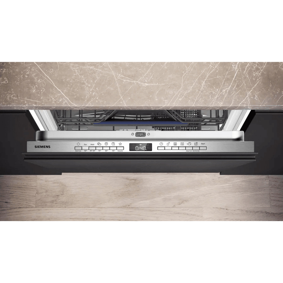 ProduktbeschreibungDer vollintegrierbare Geschirrspüler Siemens SN63HX14AE kann bis zu 13 Maßgedecke aufnehmen und bietet sechs Spülprogramme sowie vier Sonderfunktionen. Das Automatik-Programm steuert effizient den gesamten Spülprozess und dank VarioSpeed Plus wird eine bis zu dreimal so schnelle Programmlaufzeit erzielt. Das Zuschalten der intensiveZone sorgt für mehr Sprühdruck im Unterkorb, wodurch hartnäckige Verschmutzungen entfernt werden. Die flex-Körbe bieten eine angenehme Flexibilität und Bedienkomfort beim Be- und Entladen. Der dosierAssistent sorgt stets für eine optimale Verwendung des Reinigers für maximal perfekte Spülergebnisse und der iQdrive-Motor ist effizient, langlebig und leise. Und mit der blauen InfoLight-Projektion sieht man immer auf den ersten Blick, wann das Spülprogramm beendet ist. In puncto Sicherheit überzeugt der SN63HX14AE mit einem aquaStop gegen Wasserschäden.