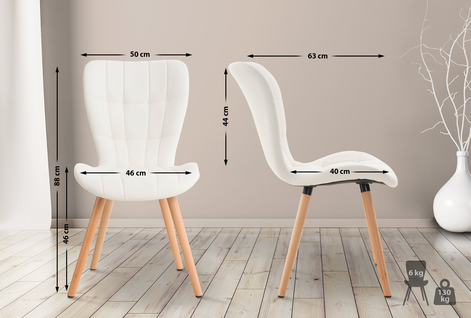 Der Esszimmerstuhl Elda stellt eine ideale Ergänzung für wohnlich moderne Räume dar und avanciert in jedem Zimmer zu einem Blickfang. Mit seiner hohen Rückenlehne und der angenehmen, komfortablen Polsterung, die mit Kunstleder bezogen ist, ermöglicht er ein bequemes Sitzen selbst über ausgedehnte Zeiträume. Die Verwendung pflegeleichter Materialien gewährleistet eine einfache und zügige Reinigung des Küchenstuhls. Auf dem zeitgemäßen 4-Fuß Untergestell aus Holz präsentiert sich dieser Stuhl stets in ansprechender Weise und zeichnet sich durch die aufregende Kombination von Kunstleder und Holz aus.