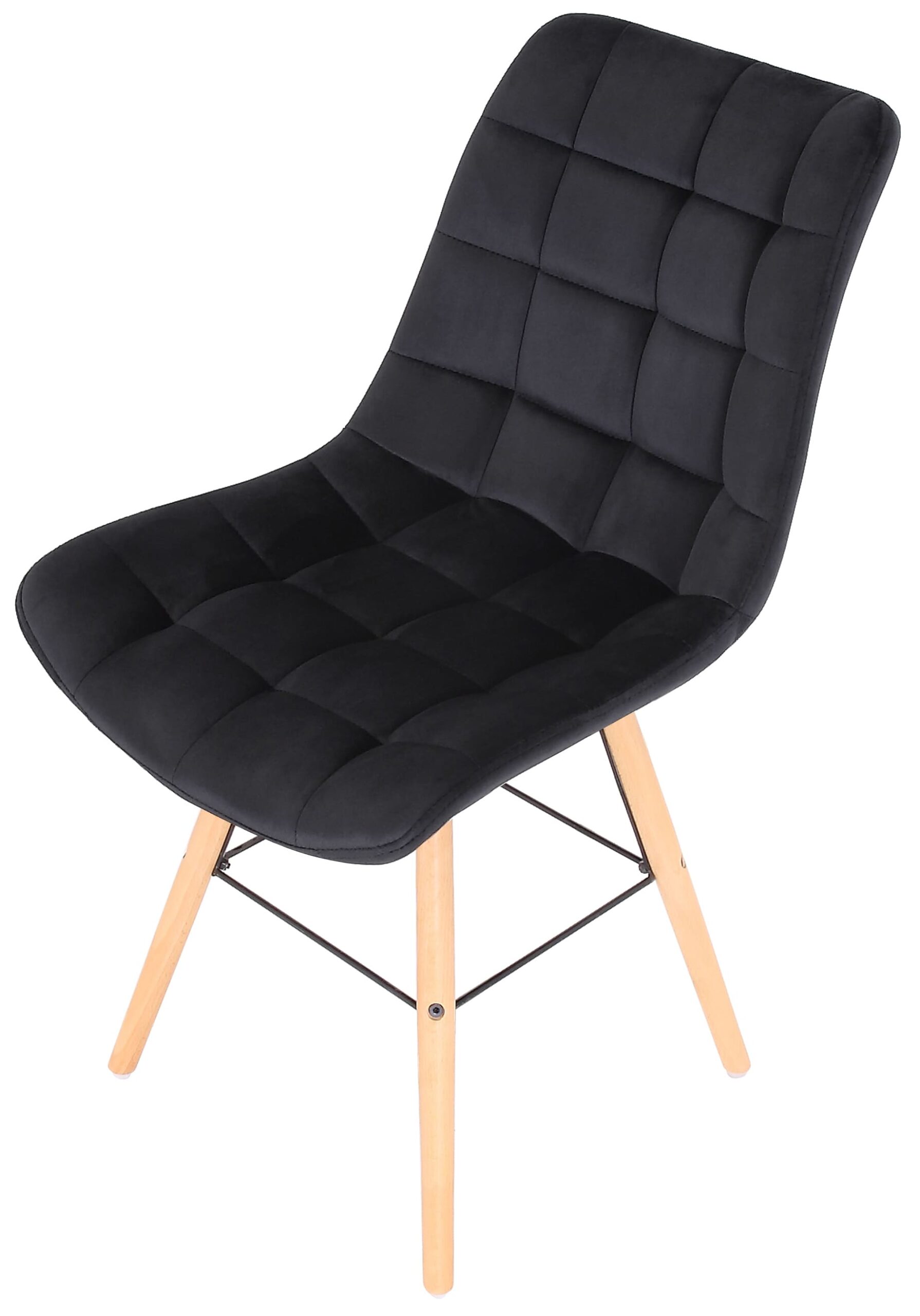 Der Esszimmerstuhl ist eine bequeme und zugleich stilvolle Sitzgelegenheit für den täglichen Gebrauch. Der Stuhl verfügt über eine großzügig gepolsterte Sitzfläche mit einem Samtbezug und ermöglicht somit ein angenehmes Sitzen auch über einen längeren Zeitraum hinaus. Ergänzt wird der Sitzkomfort durch die bequeme Rückenlehne. Die vier robusten Standbeine aus Holz und Metall verleihen dem Polsterstuhl eine gute Stabilität und sind gleichzeitig ein echter Hingucker. Zudem befinden sich Bodenschoner unter den Füßen, die ein Verkratzen des Bodens verhindern.