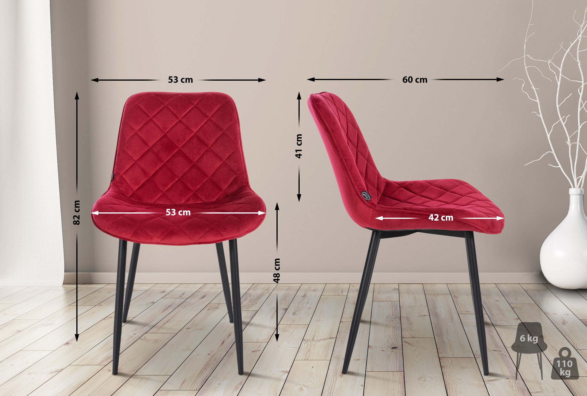 Dank der sorgfältigen Verarbeitung und dem robusten, matt schwarzen Metallgestell ist der Stuhl bis 110 kg belastbar und bietet optimale Stabilität. Der Versandzustand als zerlegtes Möbelstück ermöglicht einen unkomplizierten Transport und einfachen Aufbau direkt bei Ihnen zu Hause. Integrierte Bodenschoner schonen Ihre Böden und verhindern Kratzer, sodass der Stuhl auch bei häufiger Nutzung lange wie neu aussieht.