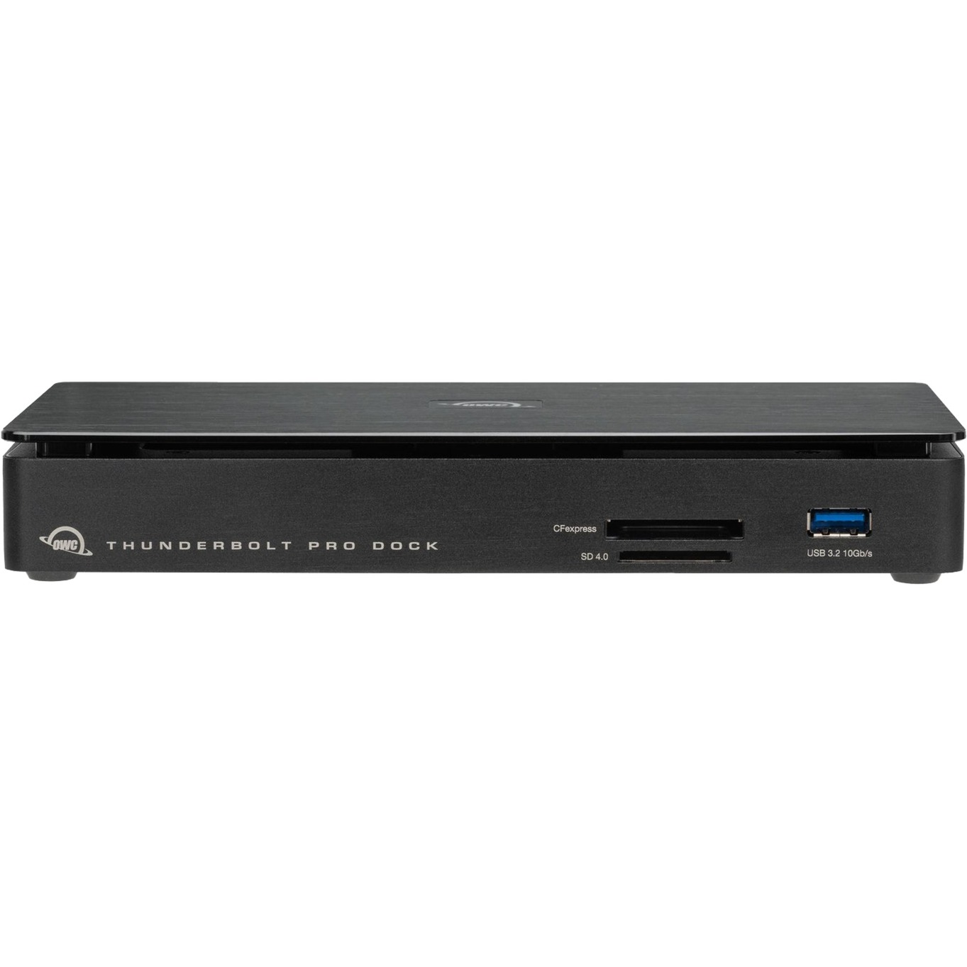 ProduktbeschreibungDas OWC Thunderbolt Pro Dock bietet einen 10Gb/s-Ethernet Port, CFexpress- und SD-Kartenlesern, zwei Thunderbolt-Anschlüsse, einem USB-C-Anschluss und drei USB-A-Anschlüsse. Darüber lassen sich ein Monitor bis 8K oder Zwei Monitore bis 4K Auflösung anschließen. Es können bis zu fünf Thunderbolt-Geräte miteinander verkettet werden und mit 85 W Ladeleistung ist das Notebook immer aufgeladen und einsatzbereit.