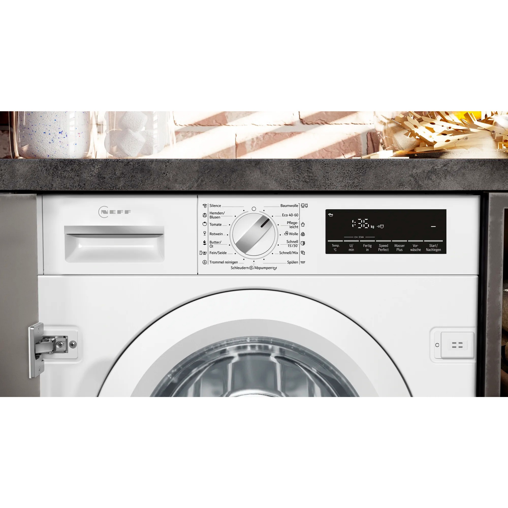 ProduktbeschreibungDie vollintegrierbare Waschmaschine Neff W6441X1 eignet sich mit einem Fassungsvermögen von 8 kg optimal für eine größere Familie und läuft dank EcoSilence Drive-Motor und Silence-Programm außergewöhnlich ruhig. Die Bedienung der W6441X1 gestaltet sich durch das LED-Display mit TouchControl Tasten und den Programmwähler kinderleicht. Mit dem TimeLight werden Programmstatus und die noch verbleibende Zeit des Programms trotz Einbau gut sichtbar auf den Boden projiziert. Das intelligent Stepless Water System optimiert den Wasserbrauch bei jedem Waschgang. Mit der Nachlegefunktion kann auch nach Programmstart bequem Wäsche nachgelegt werden. Auch in puncto Sicherheit glänzt die W6441X1 mit der AquaStop-Funktion sowie der Schaum- und Unwuchterkennung.
