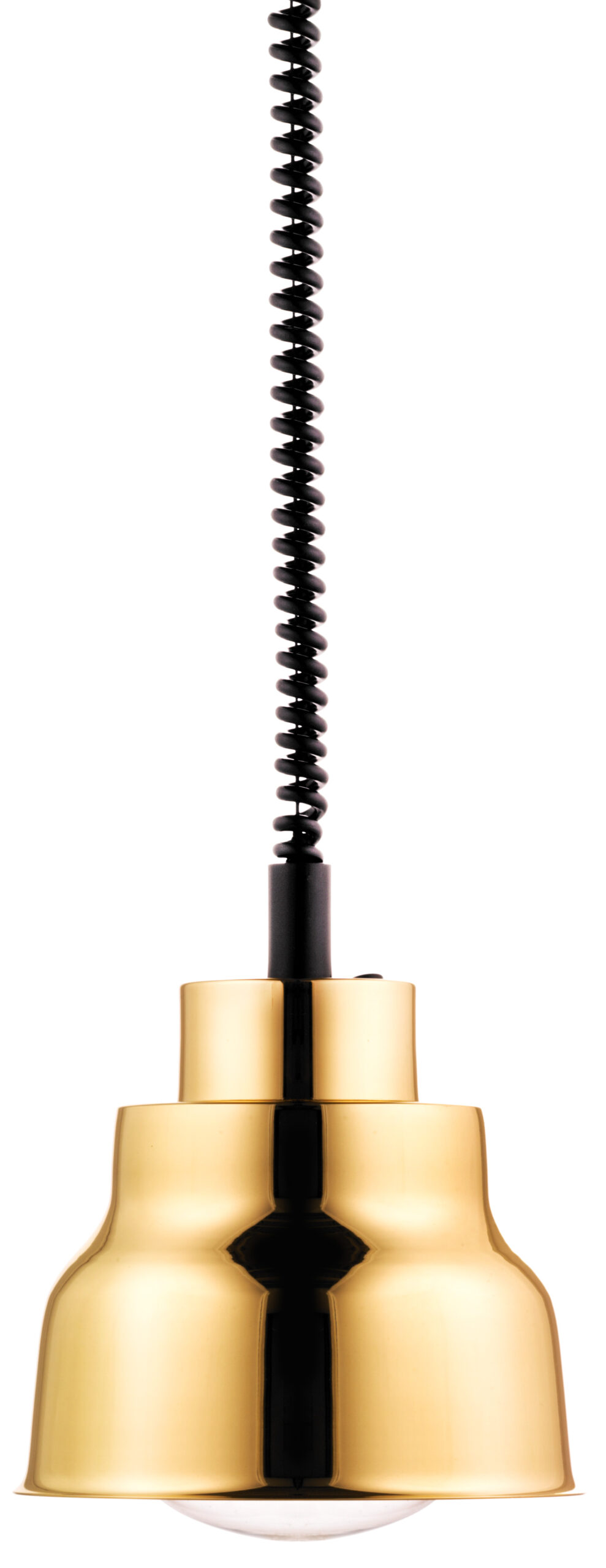 Lampenschirm aus poliertem Messing n- Ein-/Ausschalter n- Ausziehbar von 900 auf 1700 mm n- Inkl. Infrarot-Leuchtmittel (weißes Licht) n- Schwarzes Kabel