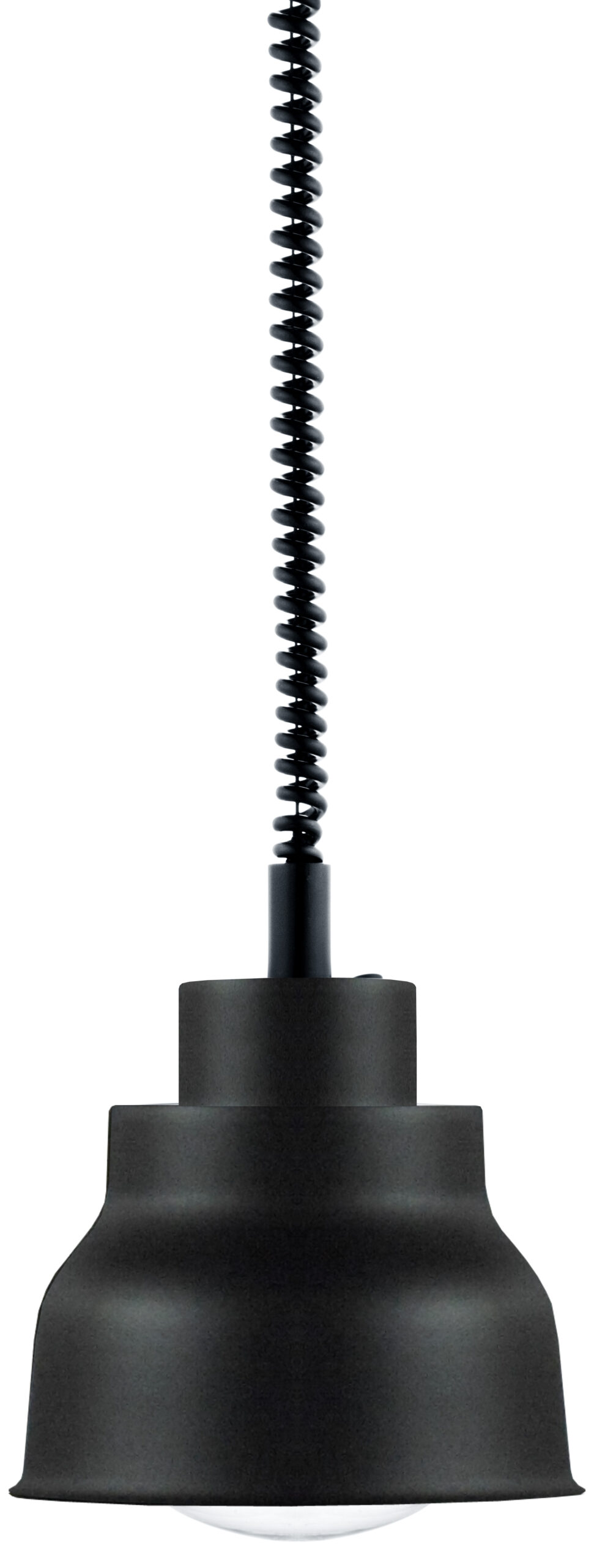 Lampenschirm aus NE-Metall n- Widerstandsfähige, schwarze Pulverbeschichtung n- Ein-/Ausschalter n- Ausziehbar von 900 auf 1700 mm n- Inkl. Infrarot-Leuchtmittel (weißes Licht) n- Schwarzes Kabel