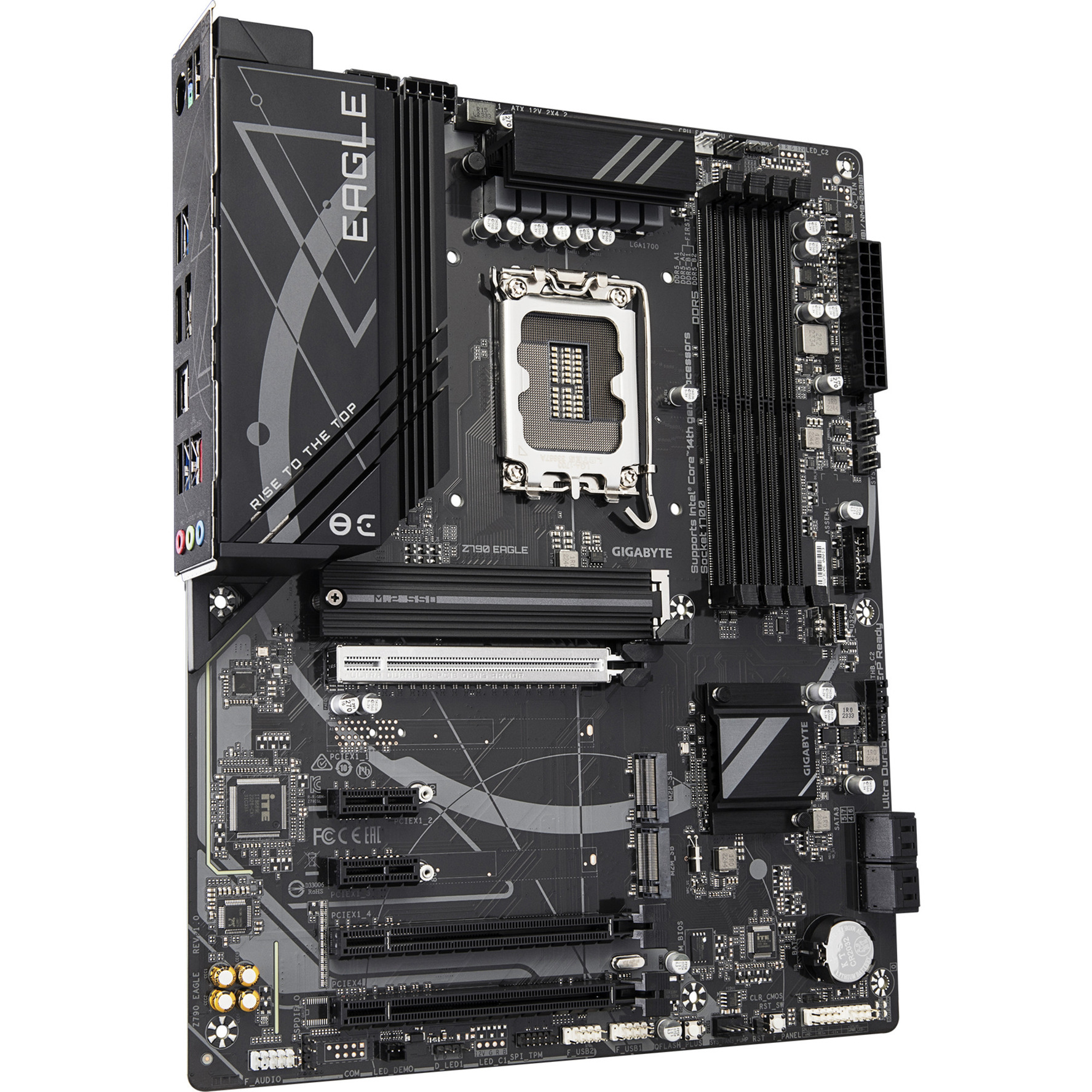 ProduktbeschreibungDas GIGABYTE Z790 EAGLE Mainboard basiert auf dem Intel®-Z790-Chipsatz und unterstützt Intel®-Prozessoren für den Sockel 1700 der 13ten und 12ten Generation. Es verfügt über vier DDR5-DIMM-Slots im Dual-Channel-Betrieb für bis zu 256 GB Arbeitsspeicher. Zur weiteren Ausstattung des GIGABYTE Z790 EAGLE gehören ein PCIe-5.0-x16-Slot, ein PCIe-4.0-x16-Slot (x4 Lanes), ein PCIe-3.0-x16-Slot (x1 Lanes) und zwei PCIe-3.0-x16-Slots. Außerdem verfügt das GIGABYTE Z790 EAGLE über 8-Kanal-Sound, eine 2,5 Gigabit-LAN-Schnittstelle, vier SATA3-Anschlüsse, drei M.2-Anschlüsse und eine Reihe an USB Schnittstellen.